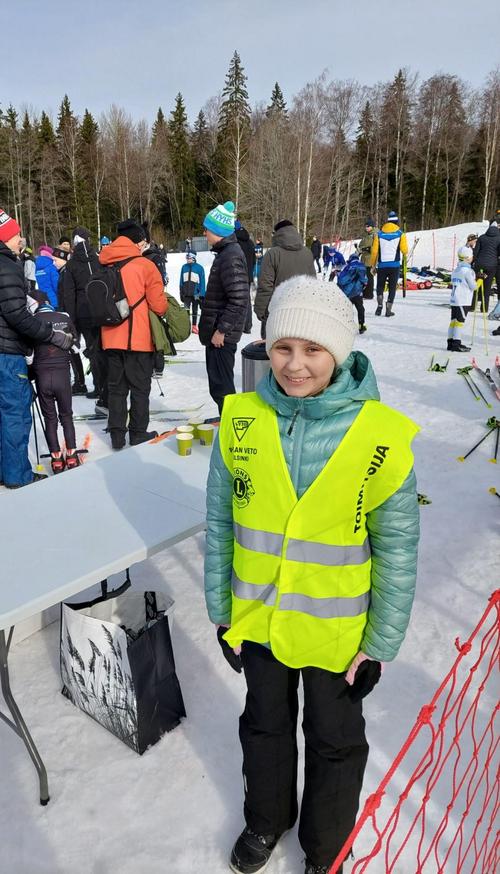 4. Mikä sai sinut lähtemään mukaan talkoolaiseksi ja mikä siinä on parasta? "Aloitin talkootyöt viime talvena kisakansliasta. Olin katsomassa kilpailuja ja ennen kisojen alkua menin avuksi kisakansliaan. Tänä talvena olin jälleen apuna kisakansliassa ja lisäksi mehupisteellä, kisaradan rakennustöissä sekä myyntipisteellä. Mukavinta on työskennellä myyntipisteellä, koska siinä on koko ajan tekemistä."