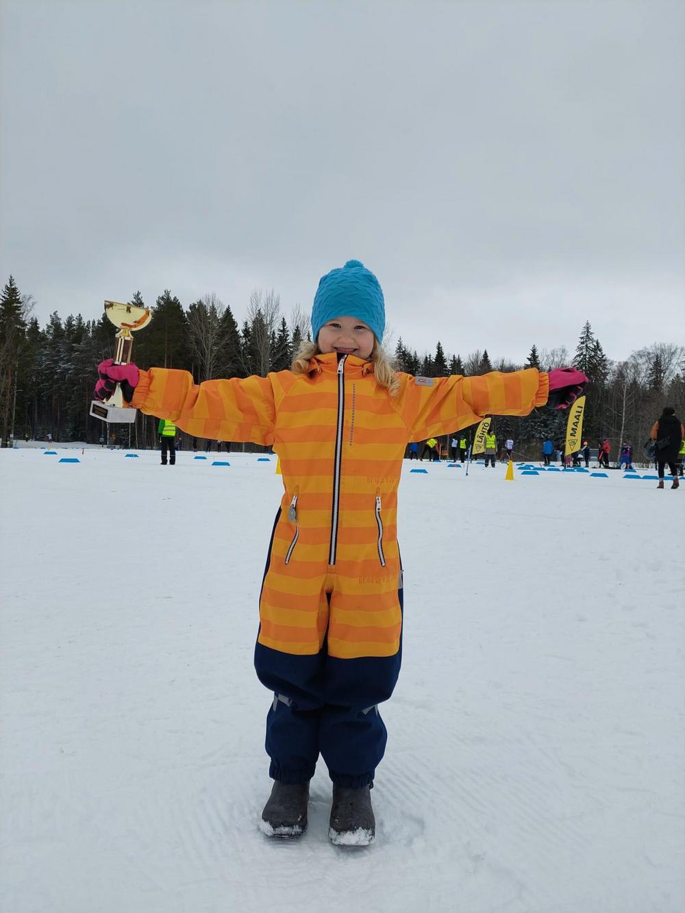 4. Parhaat saavutukset? Urani hiihtäjänä on vielä aika lyhyt. Mutta oli huippua päästä jo mukaan Hopeasomman loppukilpailuun. Sain pari pokaaliakin talven kisoista!